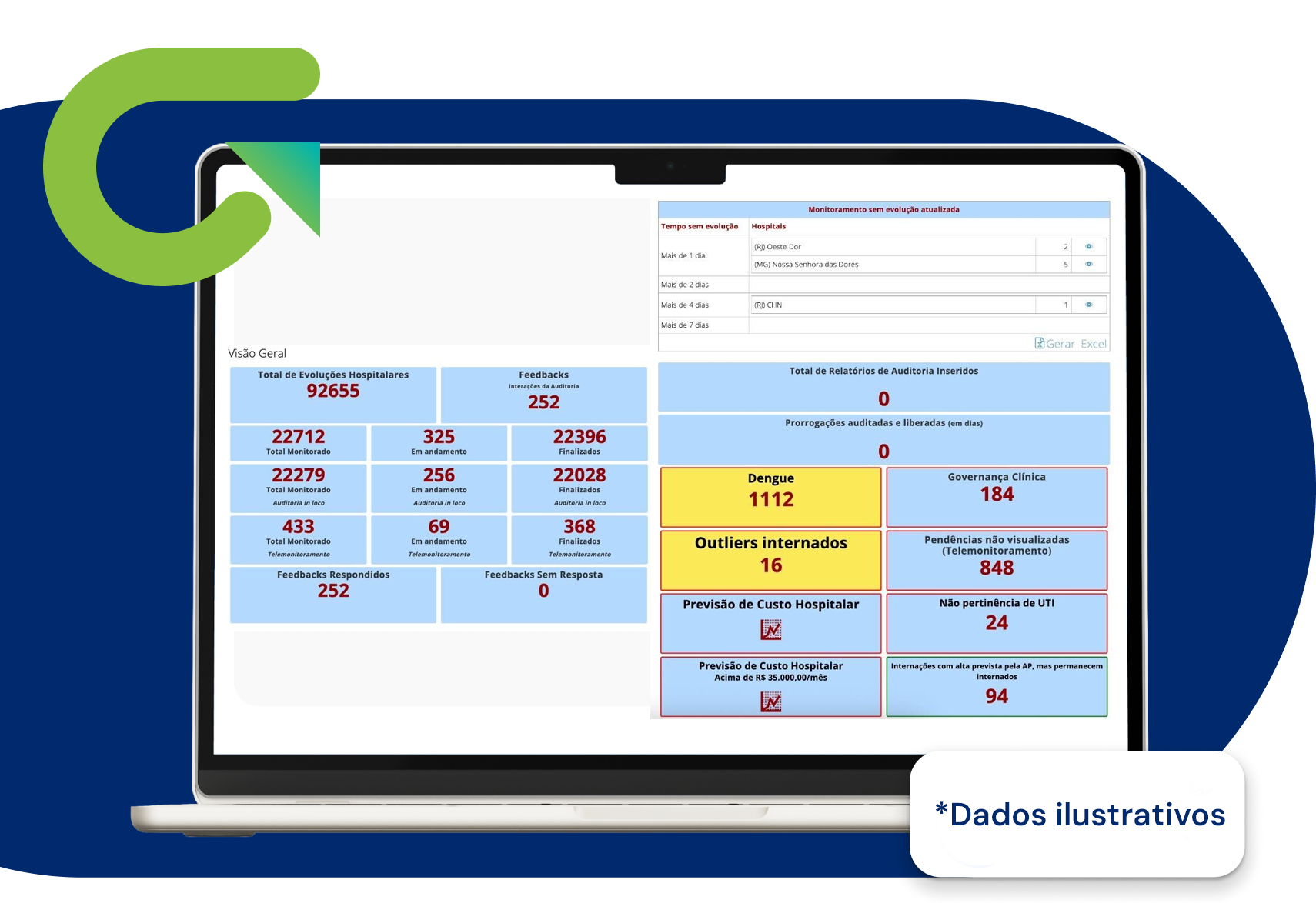 - ✓ Indicadores assistenciais e administrativos consolidados